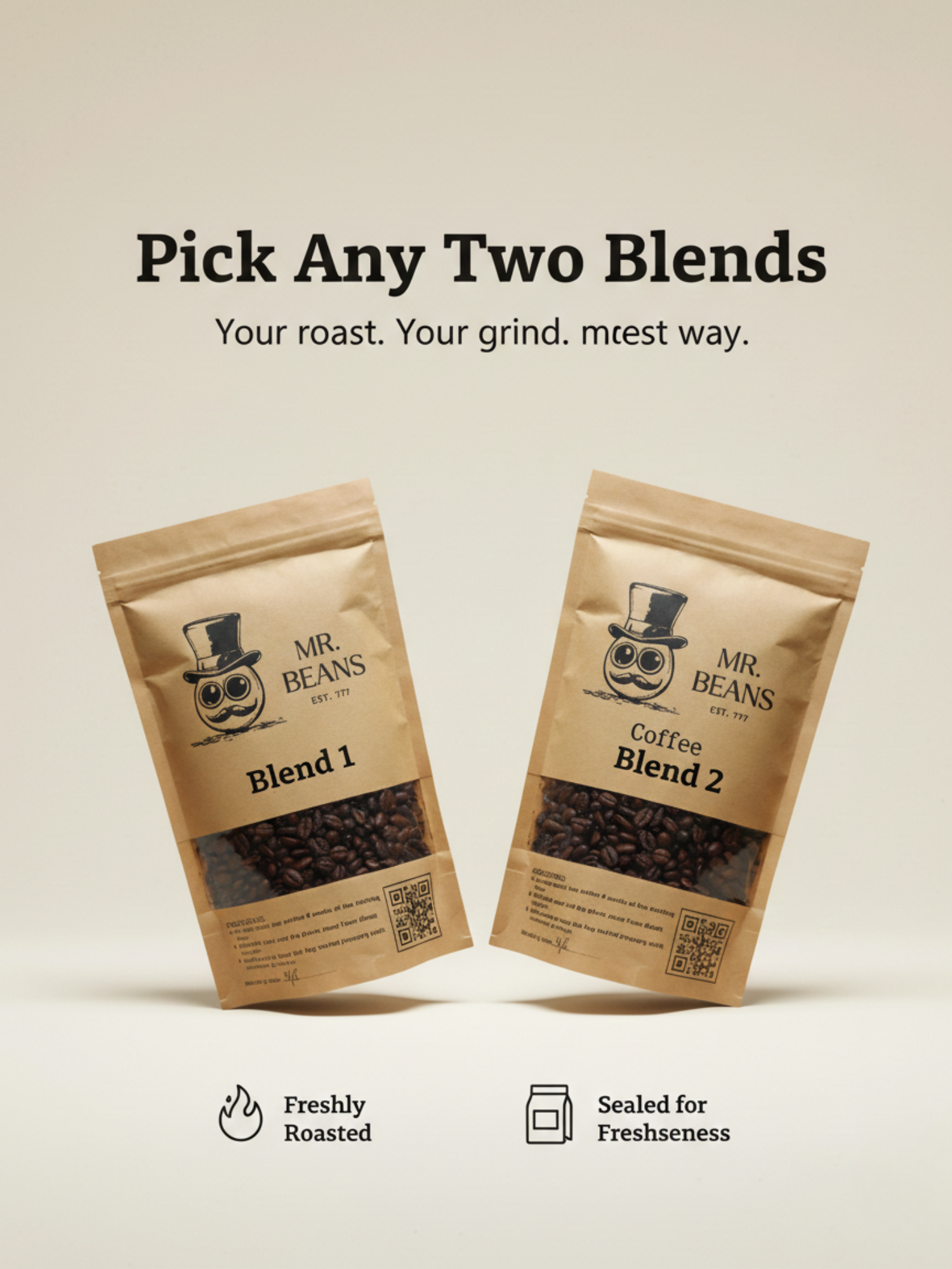 Introducing the Mr. Beans Dual Axiom- a 2x250g Medium roast customizable bundle where you choose any two blends from our four signature options. Whether you crave the bold kick of Indonesian Robusta, the smooth depth of Mandheling Arabica, or any of our other expertly crafted blends, this pack lets you explore your favorites or discover something new.
